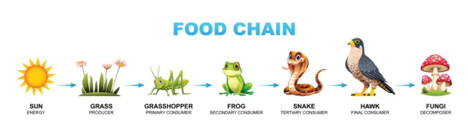 Food chain education helps students understand how living beings survive in nature. It teaches that plants, animals, and humans are all connected through food and energy. This basic knowledge makes students aware that no living organism can survive alone. It explains the balance of nature in a simple way. When one link of the food chain is disturbed, many other living beings are affected. Through this, students learn that nature works like a well-connected system.